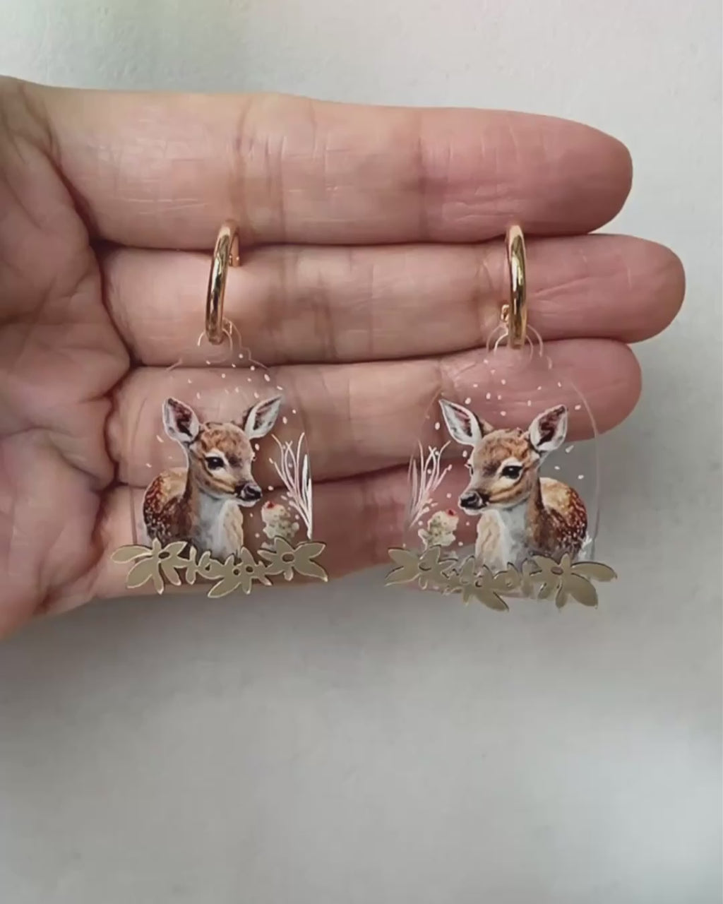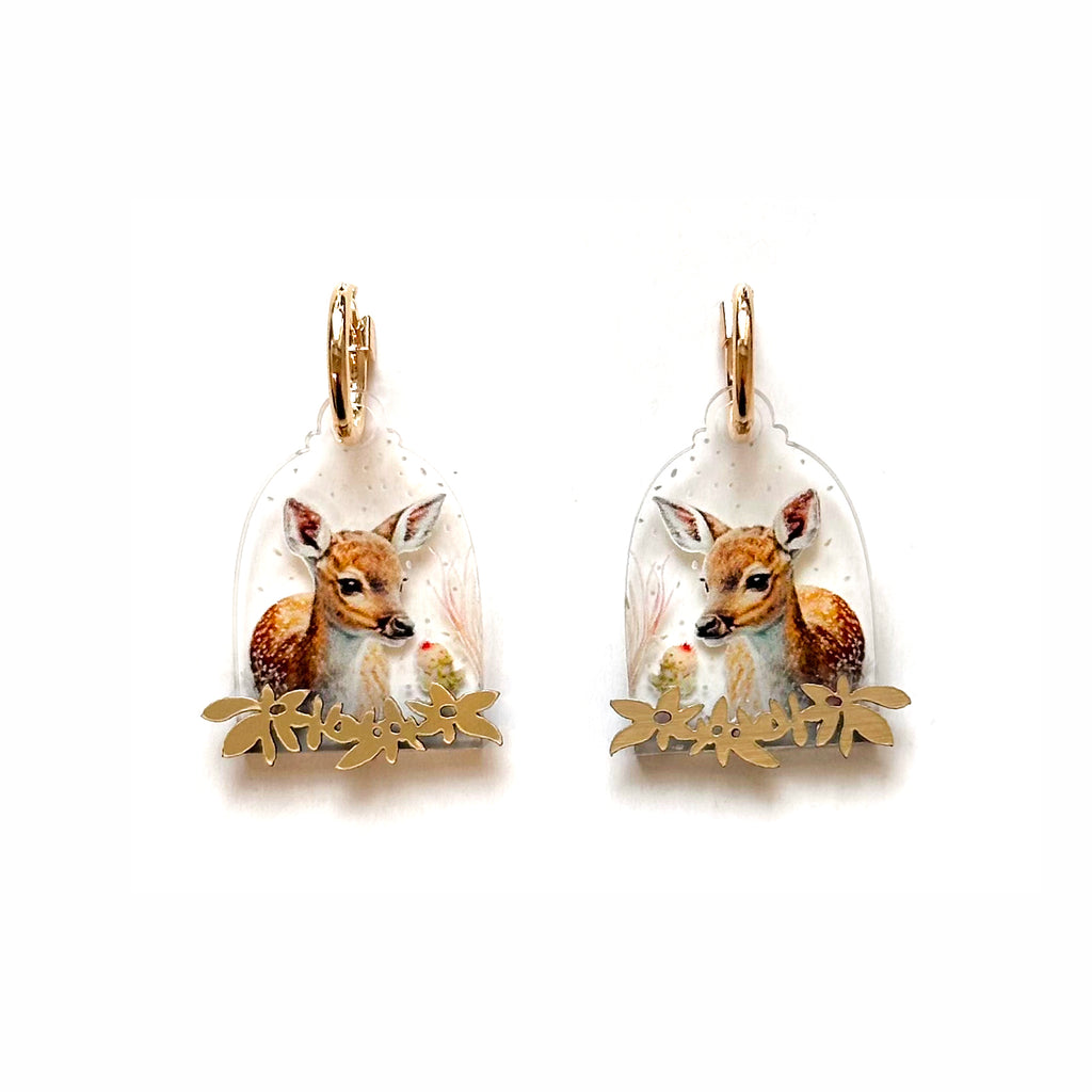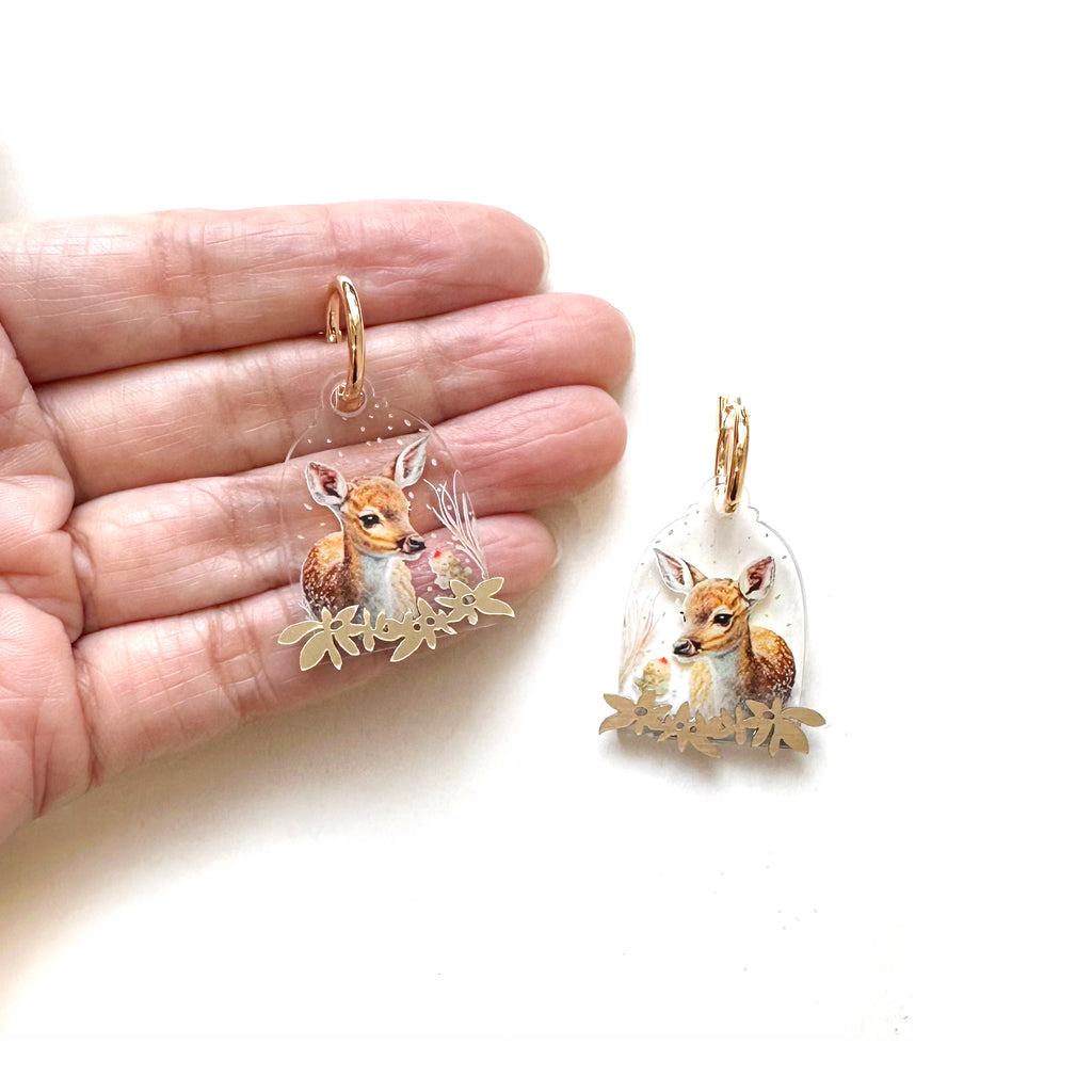 Discover the delicate beauty of the Bell Jar Hoops in Doe Eye Deer, designed like a miniature woodland diorama frozen in glass. These earrings gently capture the magic of nature, offering a whimsical yet graceful touch that supports your unique style and spirit. Let them remind you of the quiet wonder found in every moment.